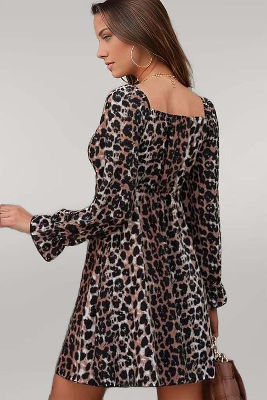 Brielle Leopard Flounce Sleeve Mini Dress