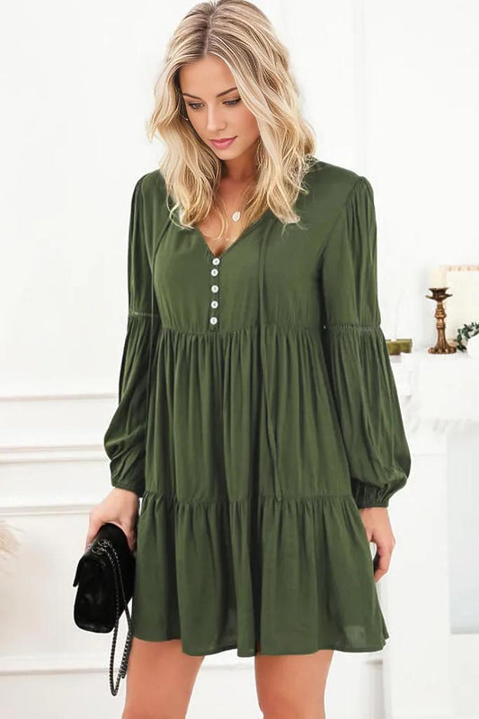 Elaina Tie Neck Long Sleeve Tiered Dress