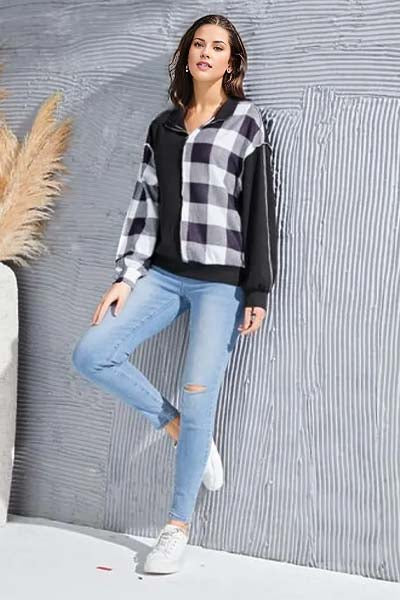 Olivia Plaid Exposed Seam Long Sleeve Blouse