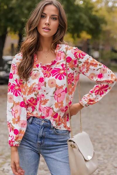 Sold outValerie Floral V-Neck Frill Blouse